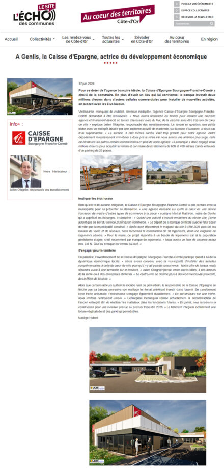 Pour se doter de l’agence bancaire idéale, la Caisse d’Epargne Bourgogne-Franche-Comté a choisi de la construire. En plus d’avoir un lieu qui lui convienne, la banque investit deux millions d’euros dans d’autres cellules commerciales pour installer de nouvelles activités, en accord avec les élus locaux.