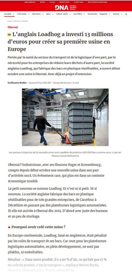 Portée par la santé du secteur du transport et de la logistique d’une part, par la nécessité pour les entreprises de réduire leurs déchets d’autre part, la société anglaise Loadhog, qui fabrique des bacs en plastique réutilisables, a ouvert début octobre une usine à Obernai. Avec déjà un projet d’extension.