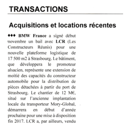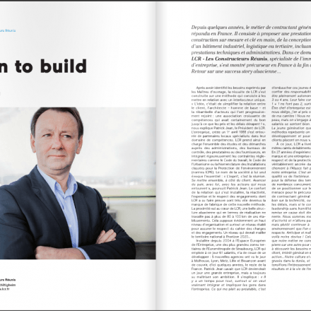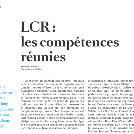 Promoteur, constructeur, LCR est l’un des premiers contractants généraux français. Le Groupe, à travers ses agences, est votre interlocuteur unique. Il imagine et réalise la construction clés en main de vos projets immobiliers d’entreprise, dans le respect de l’environnement.