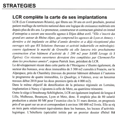 RéactivitéChez LCR, la capacité d’adaptation aux exigences et aux contraintes est permise par la rationalité des méthodes et l’esprit d’ouverture qui nous font agir rapidement et efficacement.